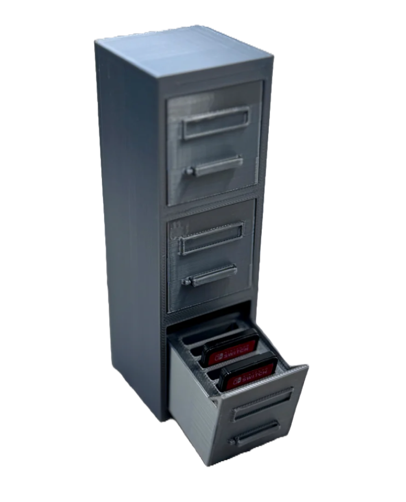 Bring eine Prise professionelle Organisation und einen Hauch von Büro-Charme in dein Gaming-Setup mit unserer einzigartigen Aktenschrank Spieleaufbewahrung! 🌟 Dieser speziell entworfene und 3D-gedruckte Halter ist nicht nur eine praktische Aufbewahrung für deine Nintendo Switch Spielesondern auch ein absoluter Blickfangder jedem Gaming-Bereich eine elegante und humorvolle Note verleiht. Archiviere deine Lieblingsspiele mit Stil!