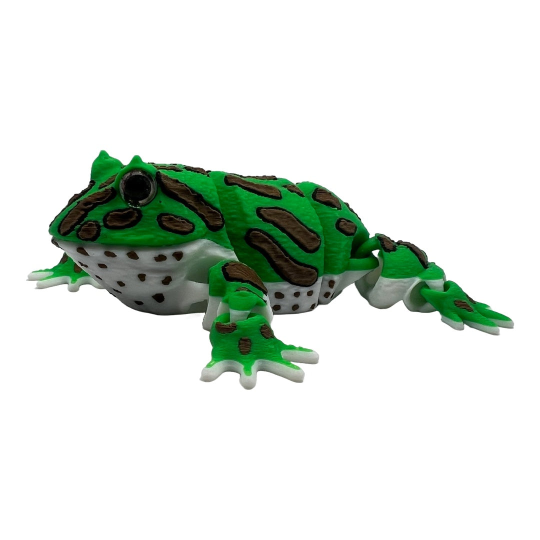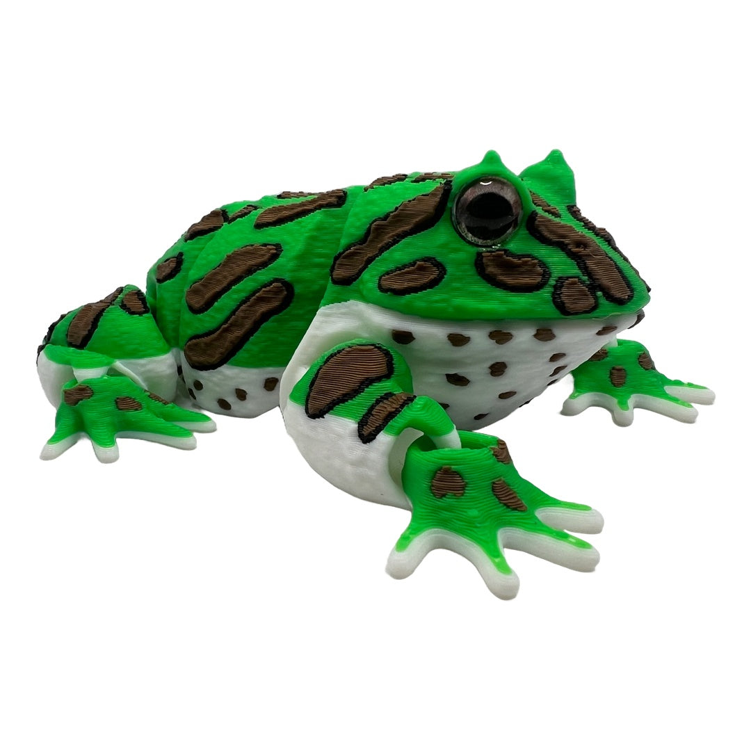 Produktbeschreibung:Diese entzückende Figur eines Pacman-Frosches (auch bekannt als Schmuckhornfrosch) fängt das einzigartige Aussehen dieser Amphibien perfekt ein. Hergestellt im mehrfarbigen 3D-Druckverfahrenbesticht die Figur durch ihre leuchtenden Farben und die charakteristischen Flecken. Das Markenzeichendas überproportional große Mauldas ihm seinen Spitznamen "Pacman" eingebracht hatist detailgetreu nachempfunden.Dank der beweglichen Beine kann der Frosch in verschiedene sitzende oder lauernde Positionen gebracht werden. Er ist das perfekte Deko-Element für Fans von exotischen Tieren oder eine lustige Ergänzung für den Schreibtisch.Produktdetails: